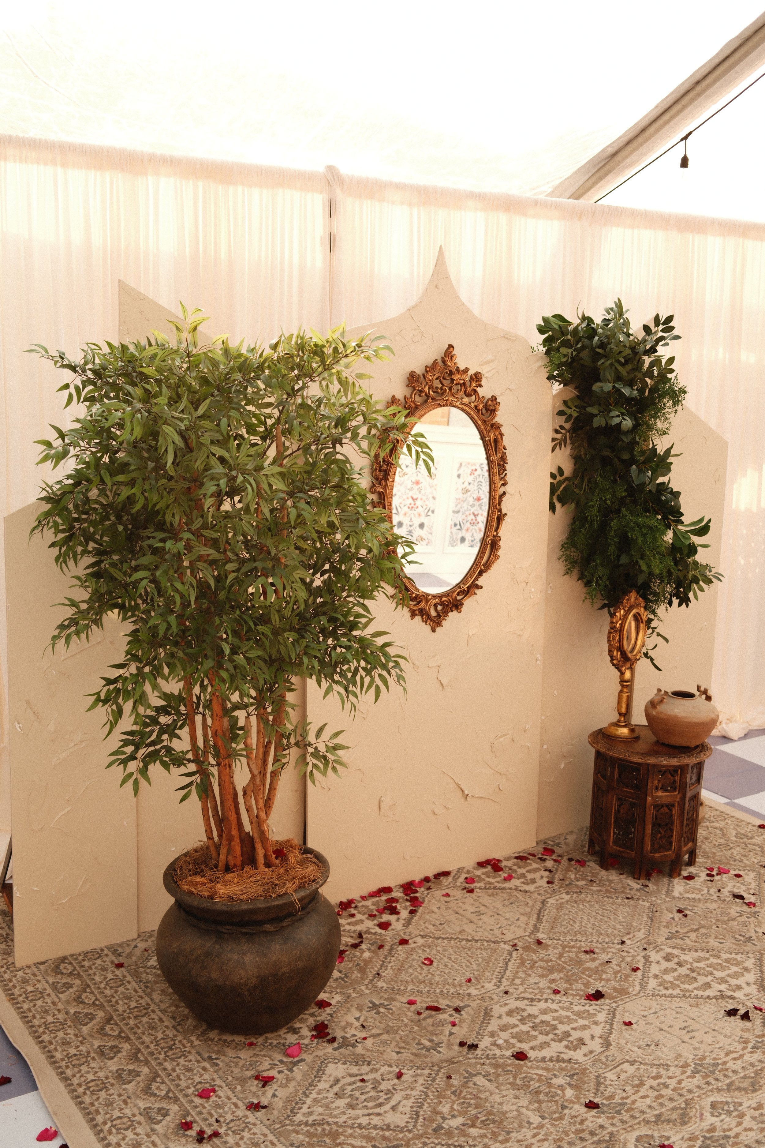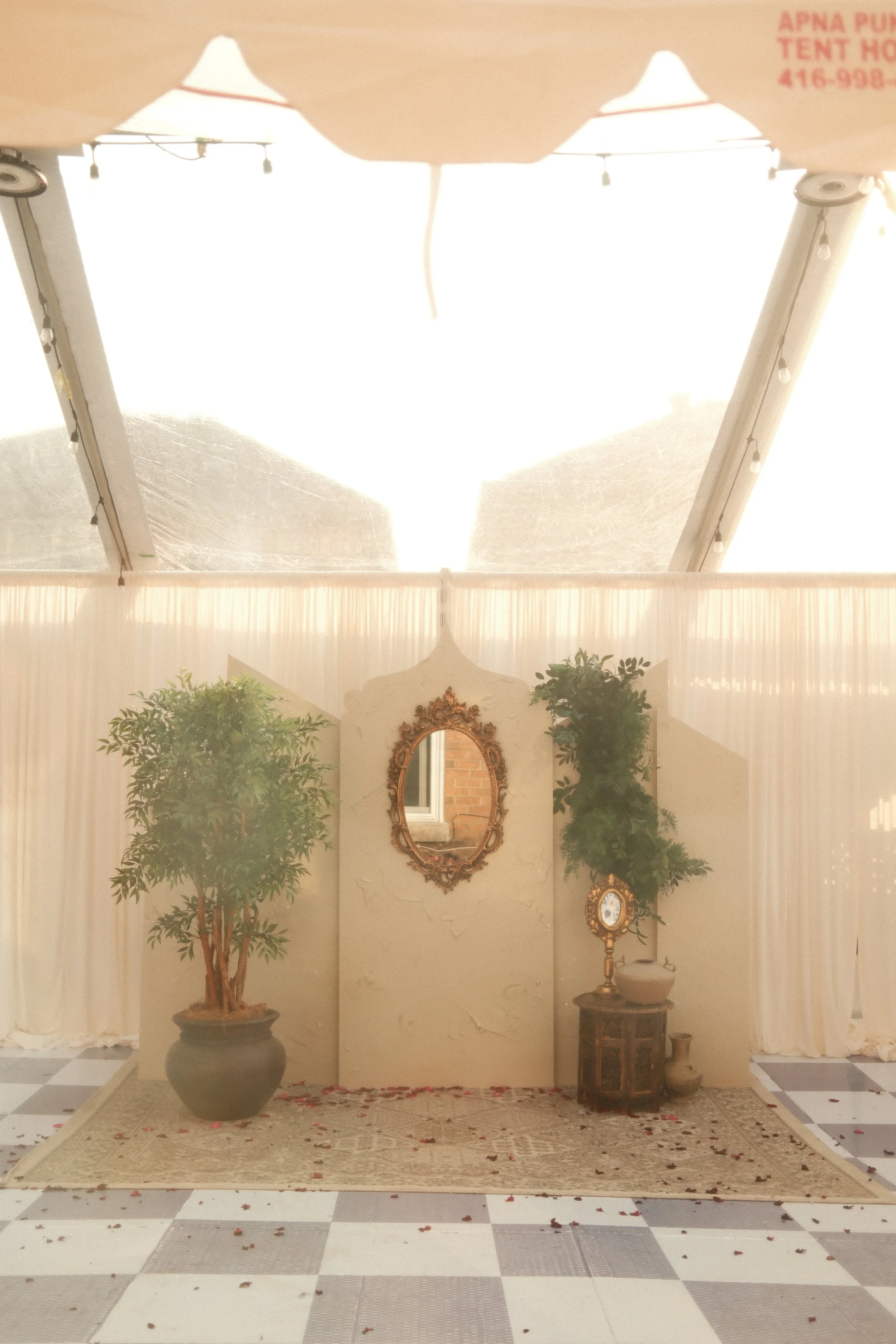 A serene and golden morning for our beautiful bride Jasmeen, who is pictured surrounded by vintage Indian accents and textures