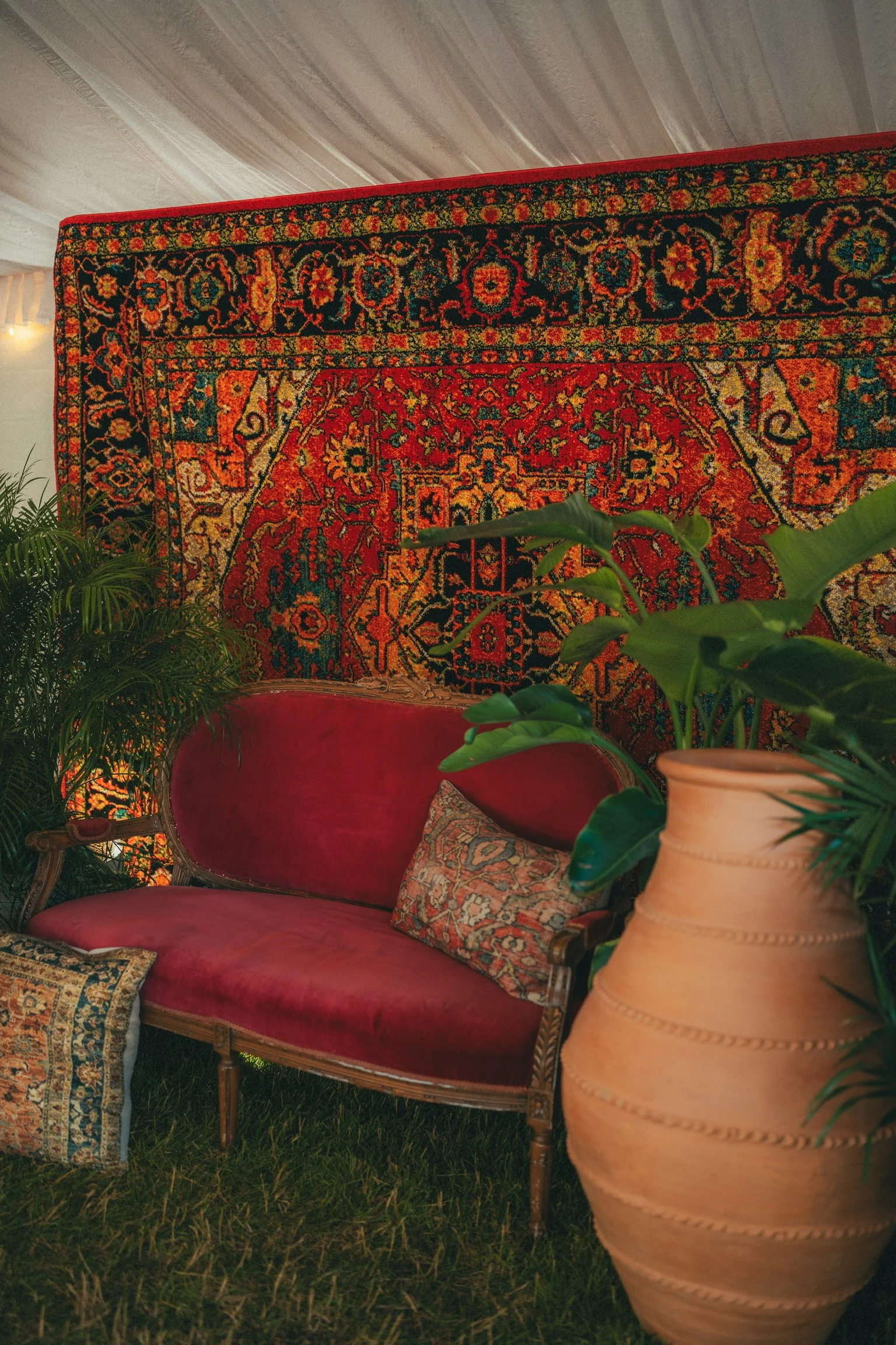 Vintage pieces, tropical plants, trees and artisan clay vases - inspired by Kerala, India with a glimpse of Morocco.