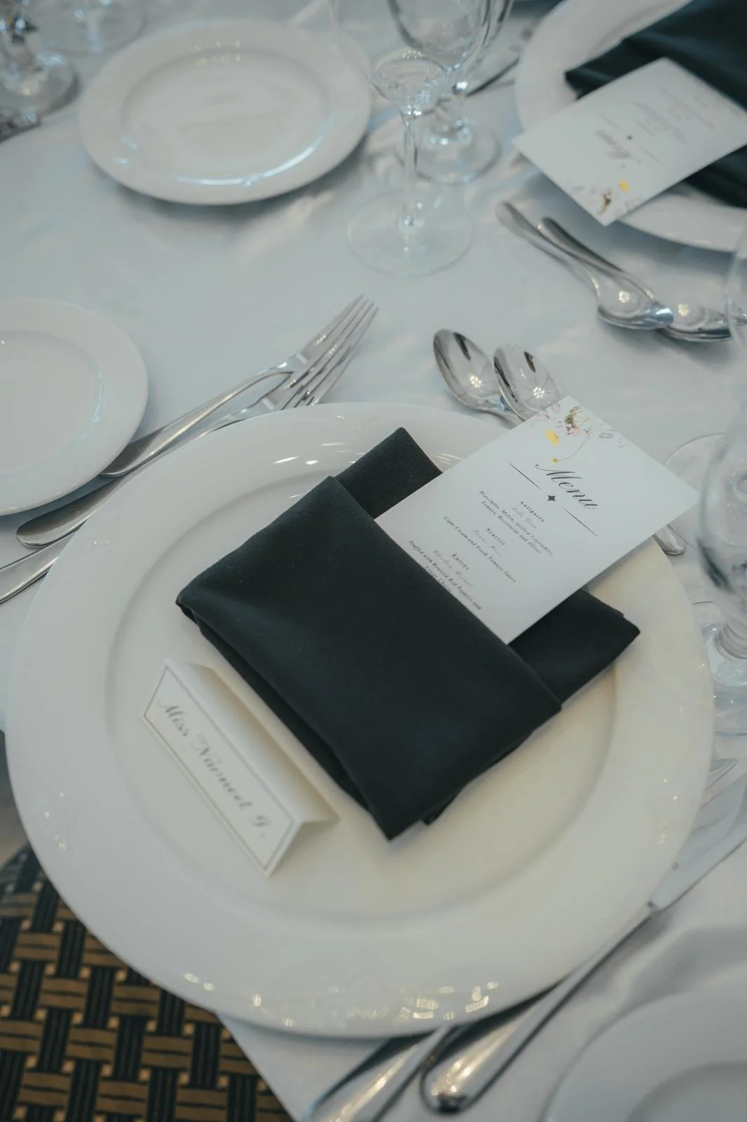We create customized stationary for any and every event - this includes but is not limited to customized menu cards, place cards, table numbers, more!