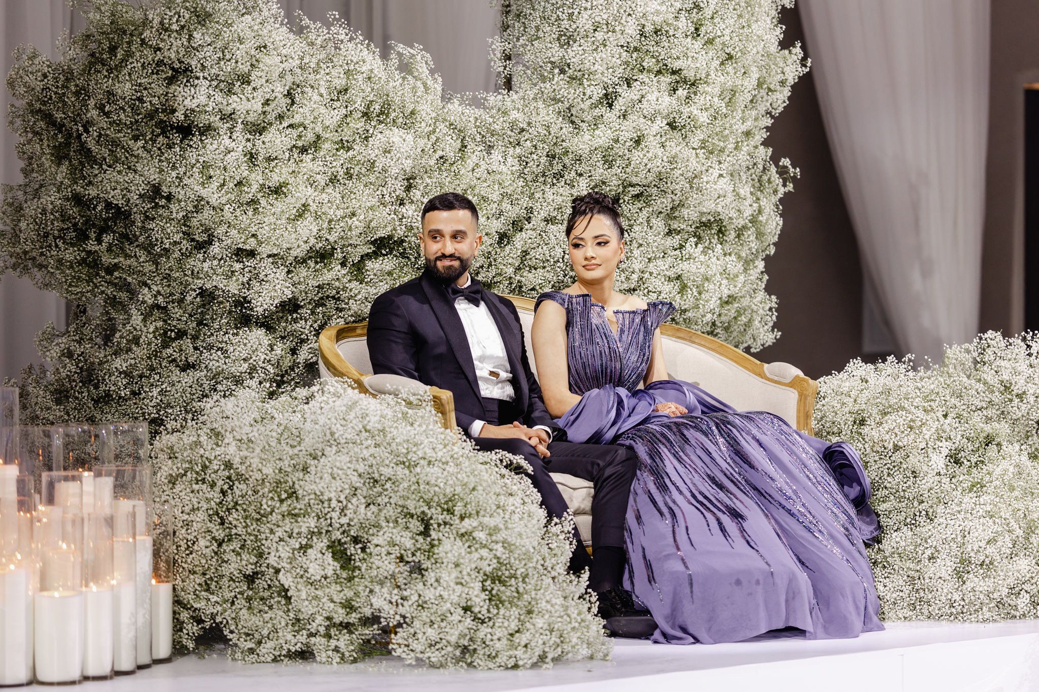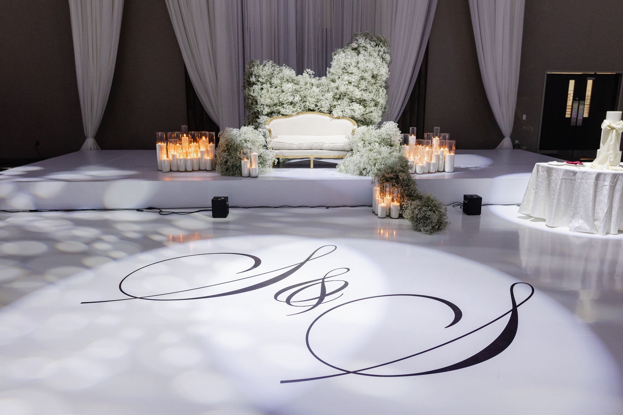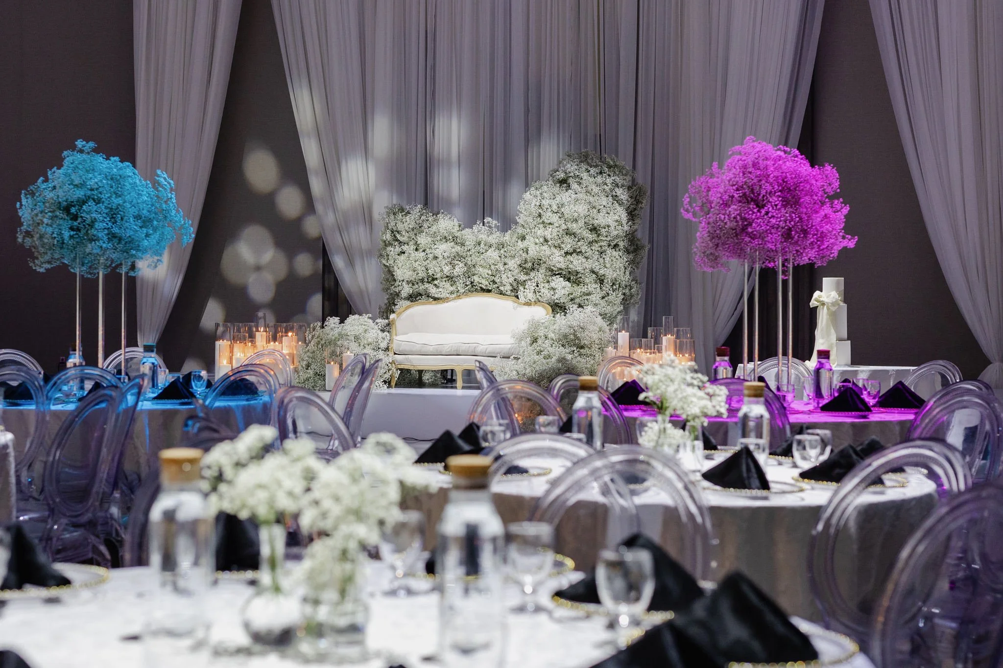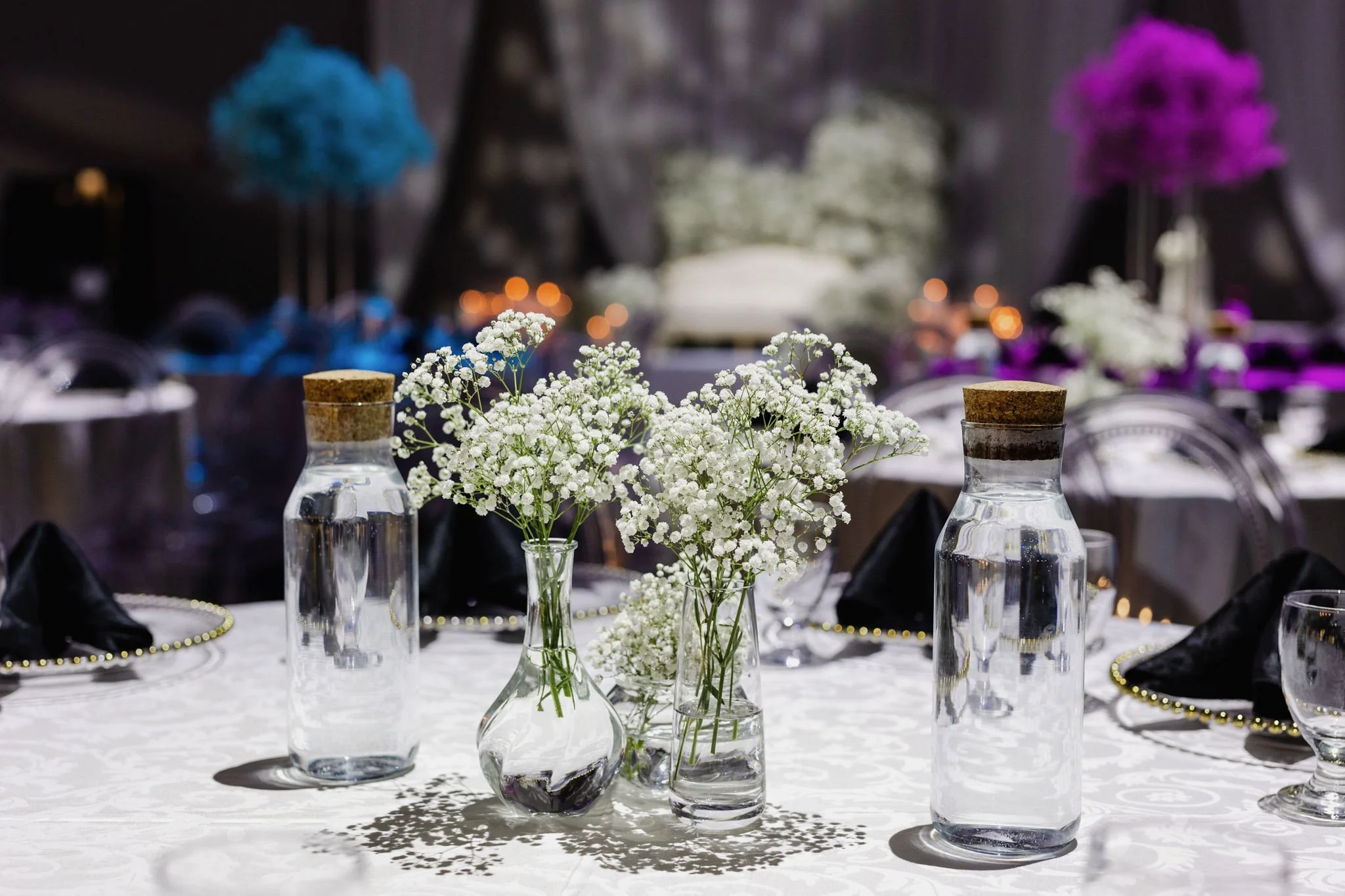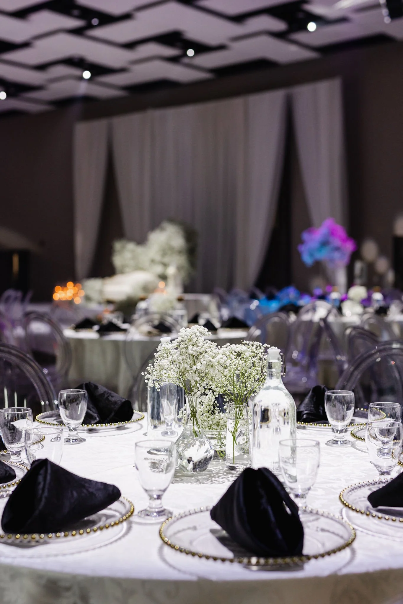Overflowing with delicate baby's breath, the centerpiece is a soft cloud of white, accented by flickering candles - an enchanting atmosphere filled with love and beauty.